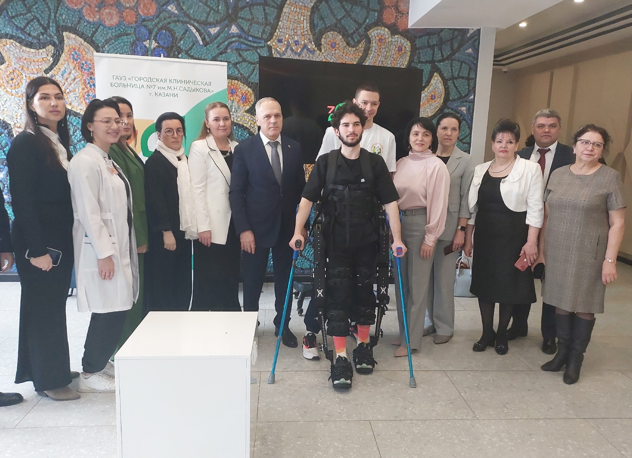 — Это мобильный экзоскелет. Благодаря нему можно проводить реабилитацию пациентов, которые передвигаются с помощью коляски. С помощью тренажера они тренировать вставание, стояние и ходьбу, — объяснила корреспонденту «Вечерней Казани» врач физической реабилитационной медицины Регина Сайфеева, работающая в седьмой горбольнице.
