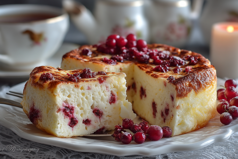 Получается обалденная вкуснятина: нежная, воздушная запеканка с румяной корочкой, а внутри — мягкая, кремовая текстура с ароматом ванили и сочными ягодными вкраплениями, которая буквально тает во рту.