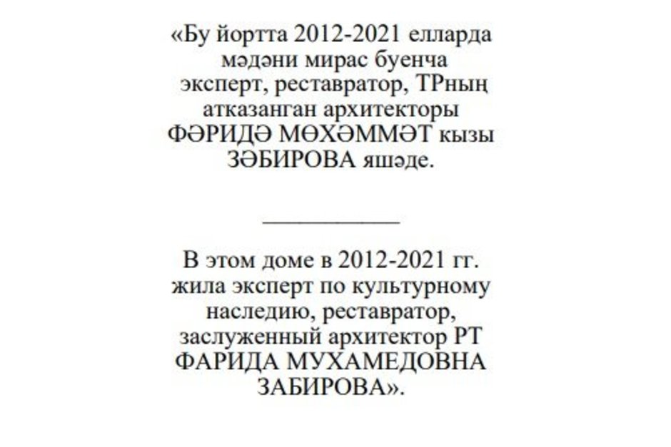 В Казани могут установить мемориальную доску Фариде Забировой. Проект постановления был направлен Алексею Песошину от Минкульта РТ и проходит антикоррупционную экспертизу.