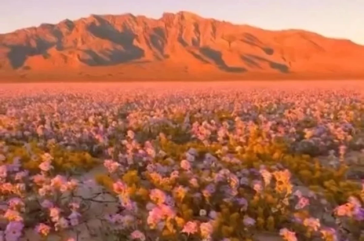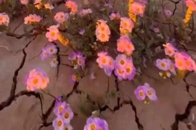 Фото и видео с пустыней, покрытой коврами из белых, желтых и фиолетовых цветов, активно распространяются в соцсетях.