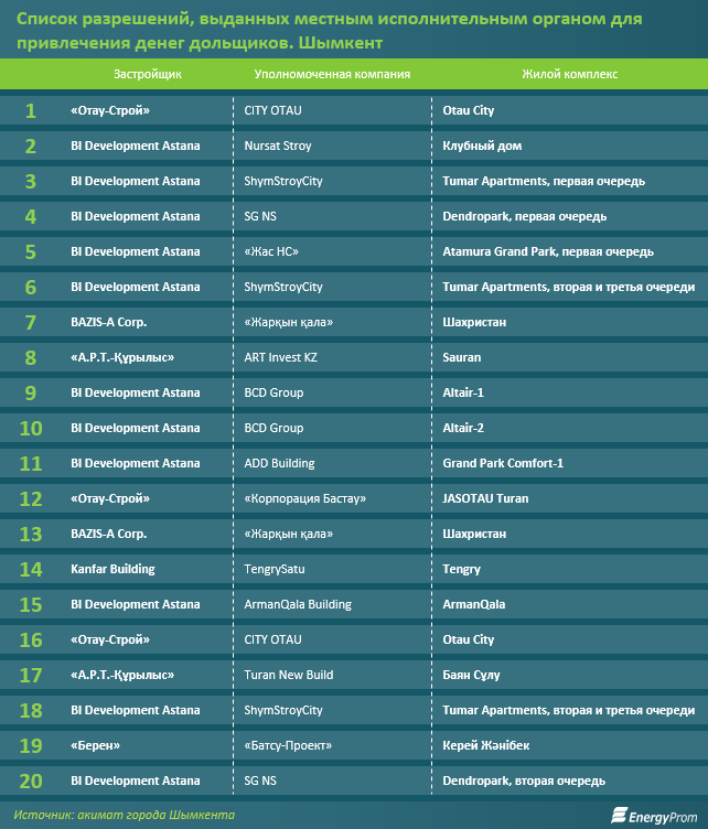Эти списки размещают акиматы городов и областей. Для примера отметим наиболее свежую публикацию местного исполнительного органа Шымкента.