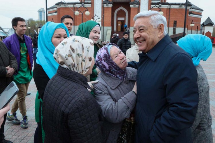 С верующими возле «Шатра Рамадана» перед Мемориальной мечетью в Москве. (Фото: «БИЗНЕС Online»)