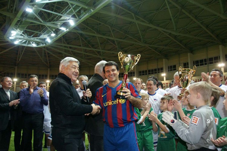 Награждает «Барселону» — победителя турнира памяти Ленара Гильмуллина в Казани. (Фото: rubin-kazan.ru)