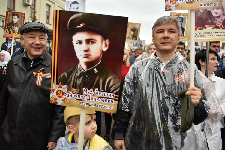 Шествие «Бессмертного полка». (С сыном Дамиром.) (Фото: «БИЗНЕС Online»)