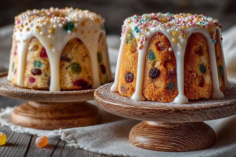 Разложите тесто по формам на 1/3, дайте подойти до краев. Выпекайте при 170 °C 45–60 минут. Остудите и украсьте глазурью.