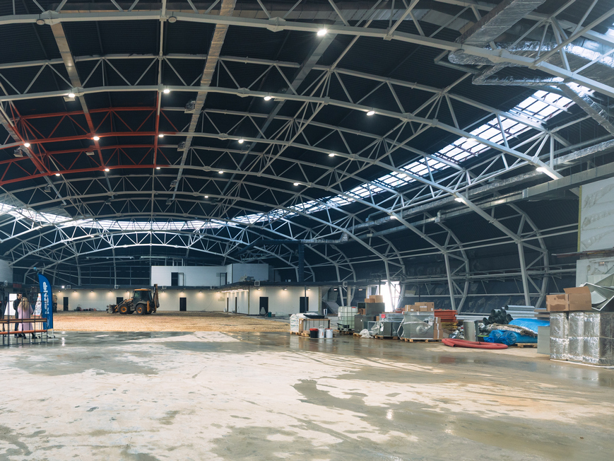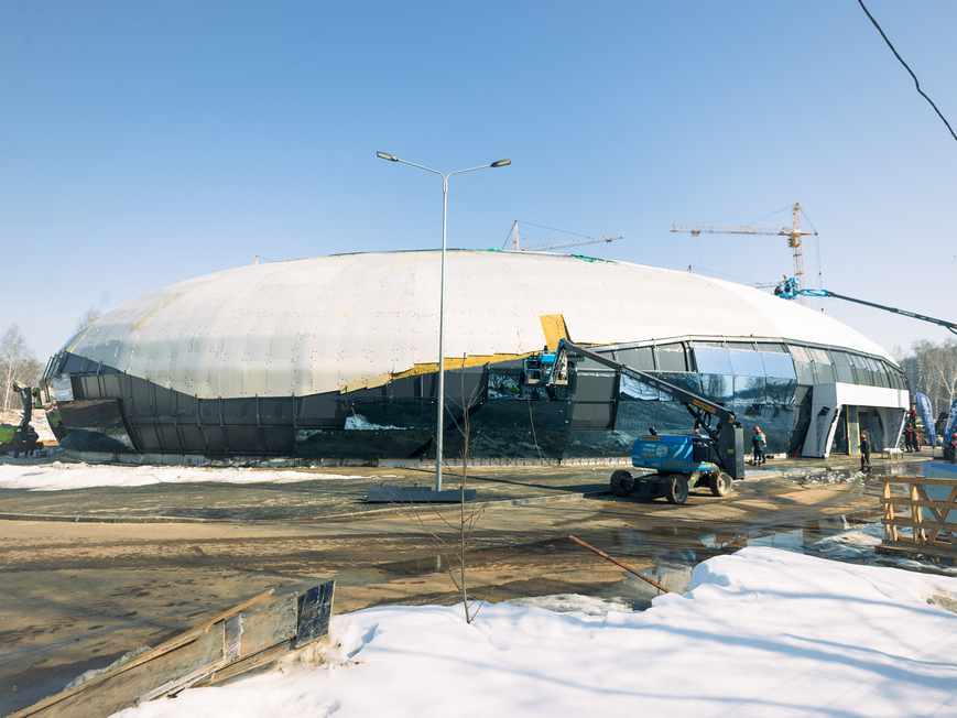 Впоследствии на первом этаже разместят площадки для футбола, волейбола, баскетбола и падел-тенниса, на втором — сквош-корт, фитнес-зал, залы для йоги и танцев, тренажерные помещения и ринг. Также предусмотрены раздевалки, медицинские кабинеты, кафе и парковка на 108 мест. После запуска отопления строители перейдут к укладке спортивных покрытий. В ближайшее время планируется монтаж футбольного газона и паркетного покрытия универсального зала.