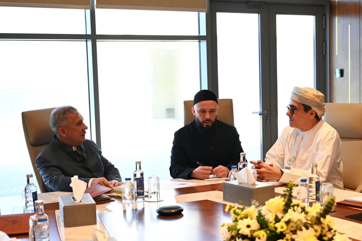 Раис Татарстана такжке встретился с министром по делам религий и вакфов Омана шейхом Мухаммадом бен Саидом Аль Мамари.
